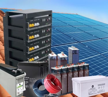 Solar panels, inverters, batteries, energy storage systems, electronic components.